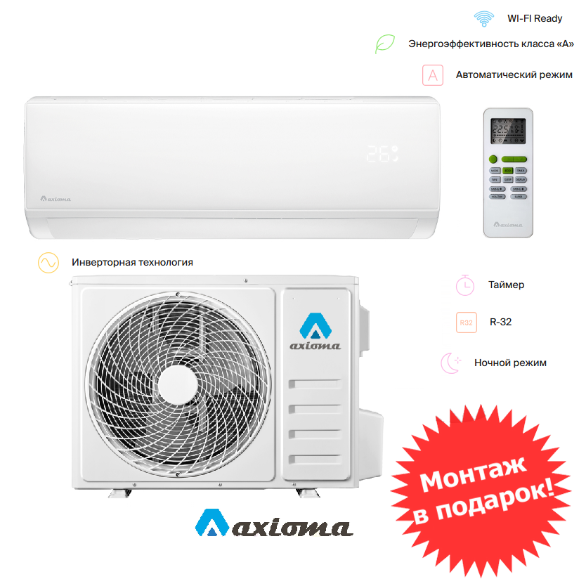 Дистрибьютор известного более ста лет бренда Daikin - компания Daichi, представила марку - Axioma. Собраны сплит системы на заводе TCL с использованием современных инверторных компрессоров Toshiba / GMCC.